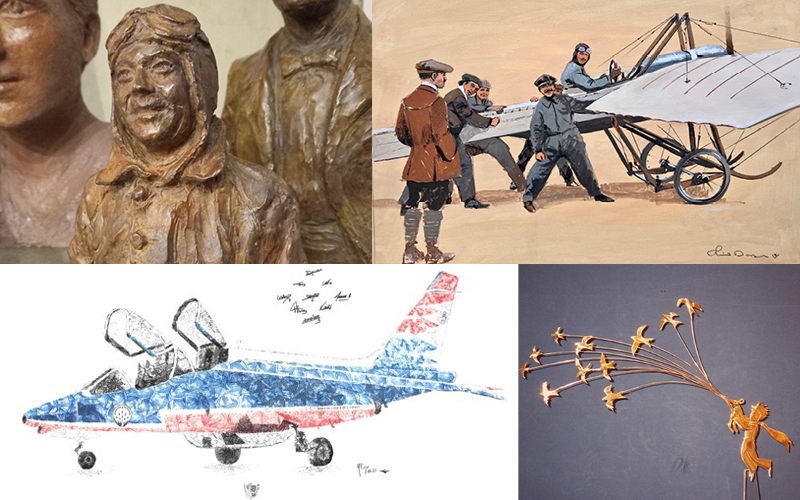 Quatre artistes « Peintre officiel de l’air et de l’espace », passionnés par l’histoire de l’aviation et ses figures emblématiques, sont ainsi réunis pour une exposition de 58 œuvres, peintures et sculptures.