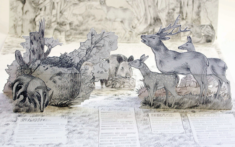 L’ingénieur papier Arnaud Roi, roi du pliage, expose ses livres animés et les étapes nécessaires à leur conception. Impossible de retenir un Wouah ! d’étonnement devant les pages qui se déploient en trois dimensions, ces prodiges d’ingénierie qui saisissent par leurs couleurs, par leurs formes et par leurs astucieux mécanismes mouvants…